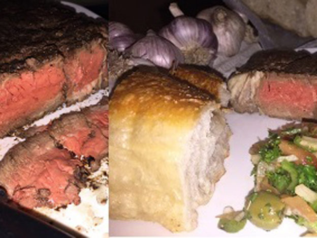 كل ما يتبقى هو قلب قطعة اللحم مرة واحدة على كل جانب، وستصبح جاهزة. وعندما أكون بصدد شوي قطعة كبيرة بوزن 5 إلى 7 كغم، أستخدم شواية كهربائية دوّارة صنعتها بنفسي. لكن بما أن الأمر اليوم يقتصر على العائلة، اخترت شوي قطعتين فقط بوزن كيلوغرام واحد لكل منهما. هذا الطبق بالنسبة لي جزء من الطقوس المألوفة.
